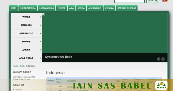 BANGKA, TIPD.IAINSASBABEL.AC.ID - Institut Agama Islam Negeri Syaikh Abdurrahman Siddik Bangka Belitung (IAIN SAS Babel) menduduki peringkat kedua terbaik di Provinsi Kepulauan Bangka Belitung Versi Webometrics Ranking of World Universities edisi Januari 2024 berdasarkan situs pemeringkatan Webometrics. Senin,13/02/2024.